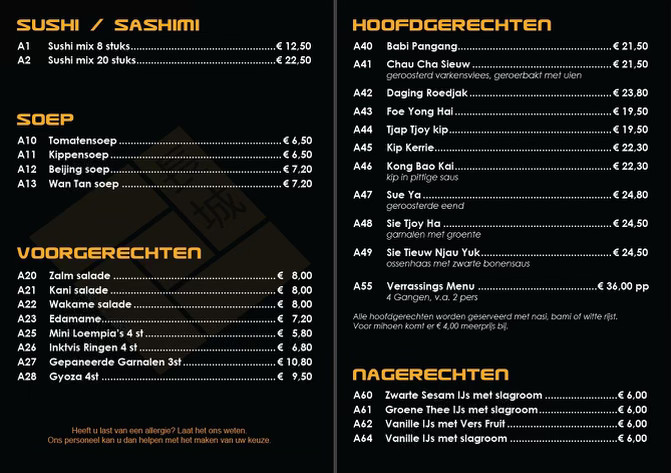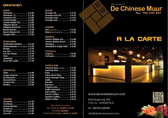 binnenzijde Menu a la Carte